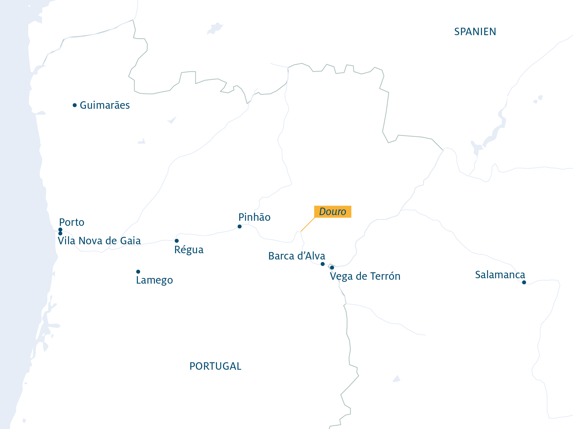 Vila Nova de Gaia am Südufer der Flussmündung in den Atlantik ist eines der Zentren der Portweinproduktion. Zahlreiche Portweinkeller laden zum Verweilen und Probieren ein. Große Hallen in Ufernähe, in denen der Portwein Jahre bis Jahrzehnte reift, zeugen von der Bedeutung der Winzerei für die Region. 100 Kilometer weiter flussaufwärts liegt mit Régua ein weiteres Portwein-Eldorado. Das örtliche «Museu do Douro» dokumentiert die Geschichte der ersten geschützten Weinbauregion der Welt.