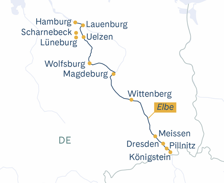 Individuelle Anreise nach Hamburg und Einschiffung. Nach dem Willkommens-Apéro heisst es «Leinen Los» und während des Abendessens geniessen Sie die stimmungsvolle Fahrt durch Hamburg nach Lauenburg, wo das Schiff über Nacht liegen bleibt.