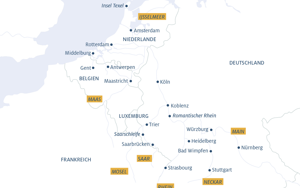 Nach Ihrer individuellen Anreise erfolgt die Einschiffung an Bord. Um 16:00 Uhr heisst es dann «Leinen los!» und Ihre erlebnisreiche Flusskreuzfahrt beginnt.