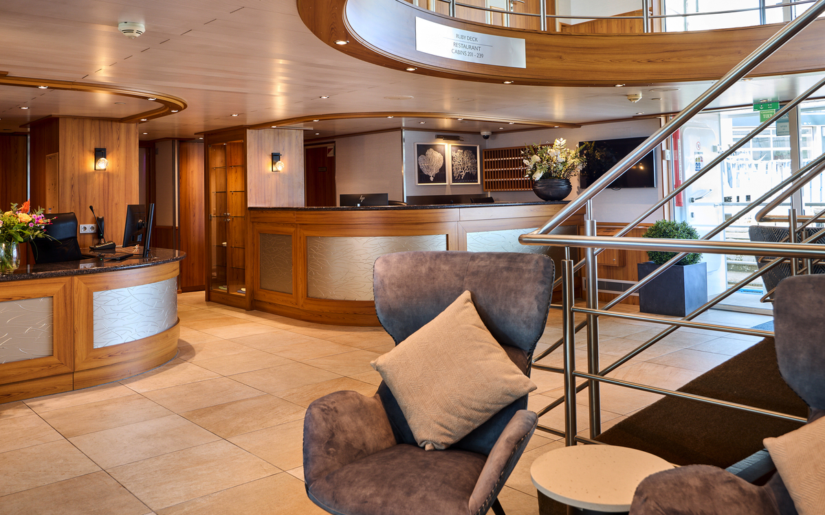 Die Schweizer Reederei Scylla hat die Swiss Splendor im 2023 übernommen und im Folgejahr umfangreich renoviert. Das Schiff zeichnet sich durch die modernen Elemente sowie die hohe Anzahl an Einzelkabinen und Suiten aus.