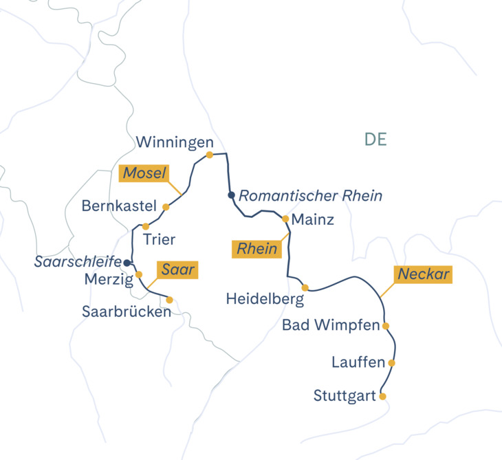 Kommen Sie an Bord der MS Thurgau Saxonia und erleben Sie eine besondere Flussreise von Saarbrücken nach Stuttgart. Auf dieser entspannten Fahrt entdecken Sie die reizvolle Flusslandschaft des Südwestens, idyllische Orte und beeindruckende Naturkulissen. Geniessen Sie den Komfort an Bord und lassen Sie sich von der Atmosphäre auf dem Wasser verzaubern – eine Reise, die Erholung und Entdeckung perfekt vereint.