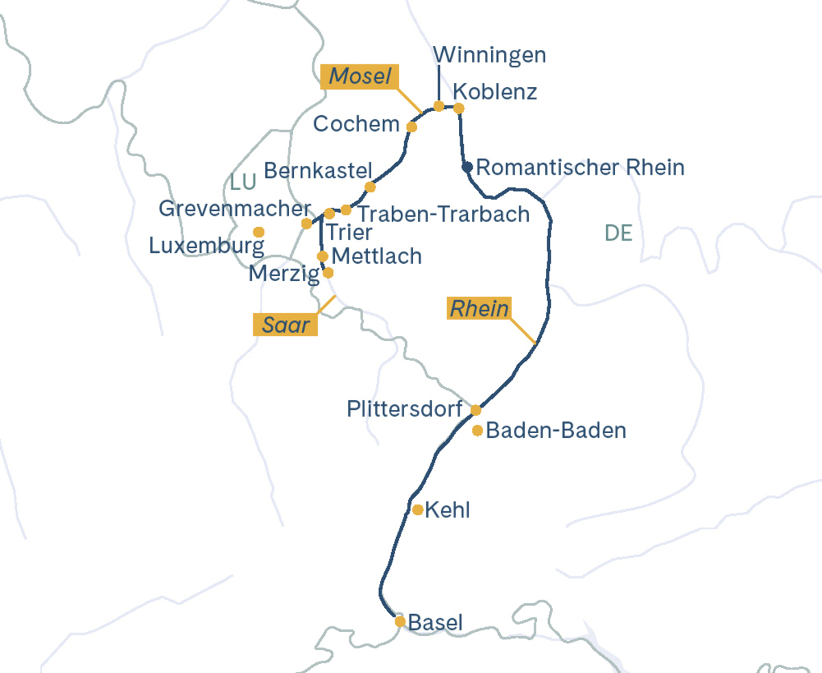 Ab Merzig beginnt der Ausflug(1) zur bekannten Saarschleife, wo Sie den Baumwipfelpfad erkunden und die atemberaubende Aussicht über die sich schlängelnde Saar und die umliegende Natur geniessen können. Nach dem Mittagessen erreicht das Schiff Mettlach, wo ein Ausflug(2) zu Villeroy & Boch auf dem Programm steht und Sie Einblicke in die traditionsreiche Manufaktur erhalten. Am Abend setzt das Schiff die Fahrt durch die abwechslungsreiche Saarlandschaft fort und erreicht spät abends Trier, wo Sie anlegen und den Tag entspannt ausklingen lassen können.