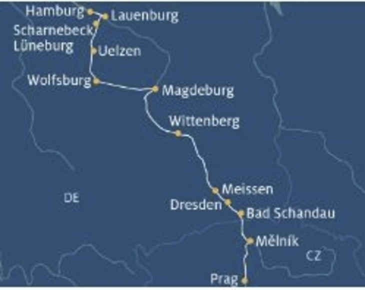 Die Fahrt auf der Elbe bietet Ihnen die Möglichkeit, die vorbeiziehenden Landschaften zu genießen. Ein Rundgang(1) durch die Altstadt Wittenbergs. Das UNESCO-Welterbe «Luthergedenkstätten Wittenberg» umfasst Schlosskirche mit Thesentür, Stadtkirche, Melanchthonhaus und Lutherhaus. Die Fahrt wird am frühen Abend fortgesetzt und führt entlang der Dübener und der Dahlener Heide.