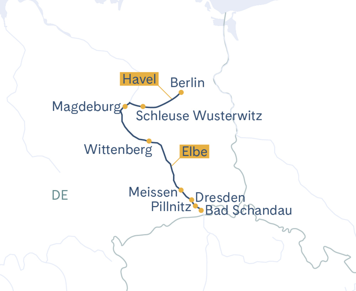 Am Morgen fahren Sie durch die liebliche Flusslandschaft nach Meissen. Ein Rundgang(1) durch die Porzellan- und Weinstadt Meissen mit der Bürgerfrau. Sie können sich alternativ an einem Rundgang(3) durch die Altstadt Meissens mit einem Besuch der Porzellan-Manufaktur beteiligen. Genießen Sie den Nachmittag an Bord, bevor Sie Wittenberg erreichen.