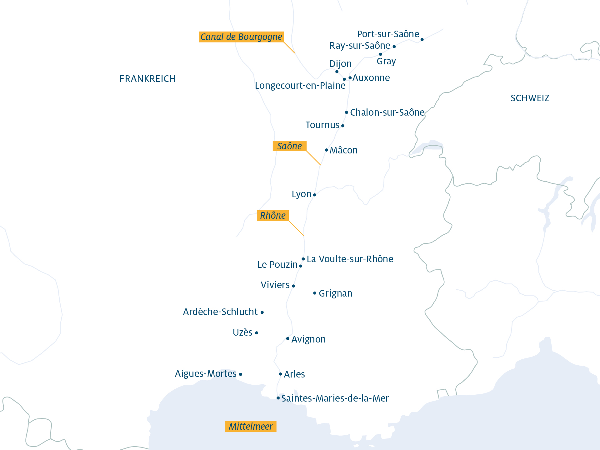Bereiten Sie sich darauf vor, in die tiefen Geschichten einzutauchen, die die Ufer der Rhône und Saône prägen. Die Reise entlang dieser majestätischen Flüsse ist eine Hommage an die lebendige Kultur und die spektakulären Landschaften Südfrankreichs.