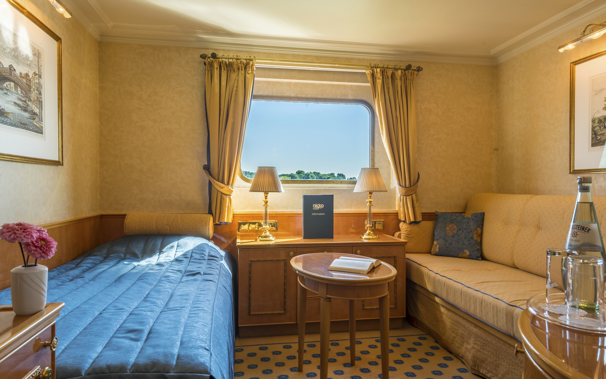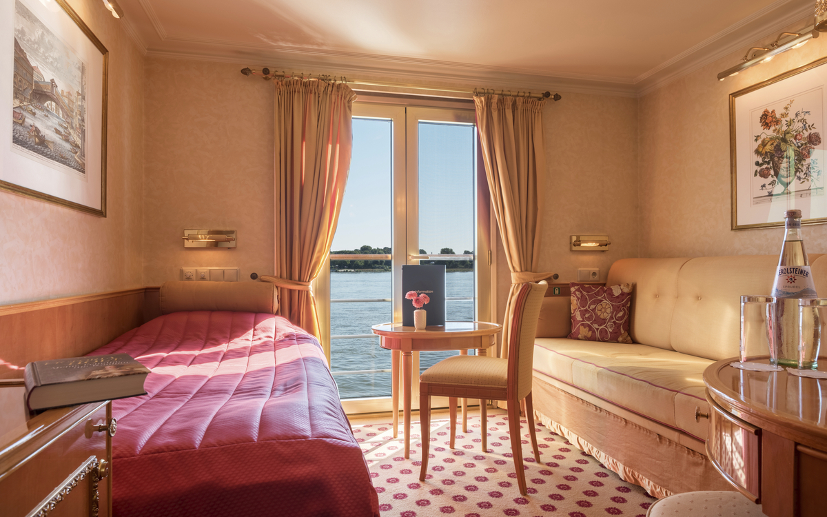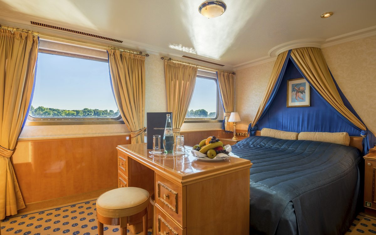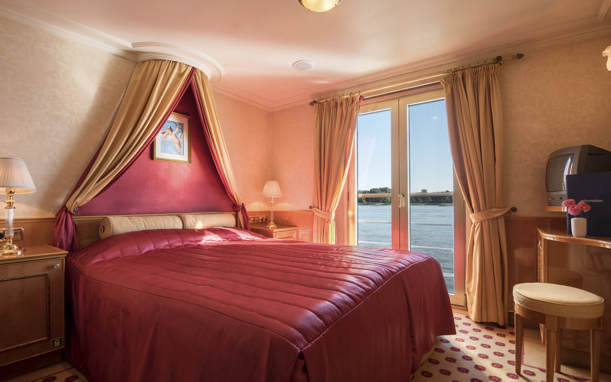 Dieses charmante Flussschiff empfängt Sie in einem eleganten Ambiente, das an den Rokoko-Stil erinnert – mit verspielten Details, liebevoll ausgewählten Dekorationen und Reproduktionen bekannter Gemälde. Eine Atmosphäre wie in einem kleinen Schloss auf dem Wasser.