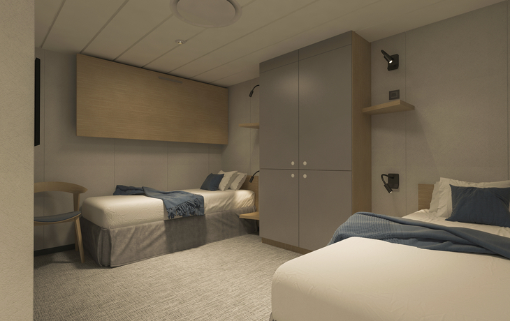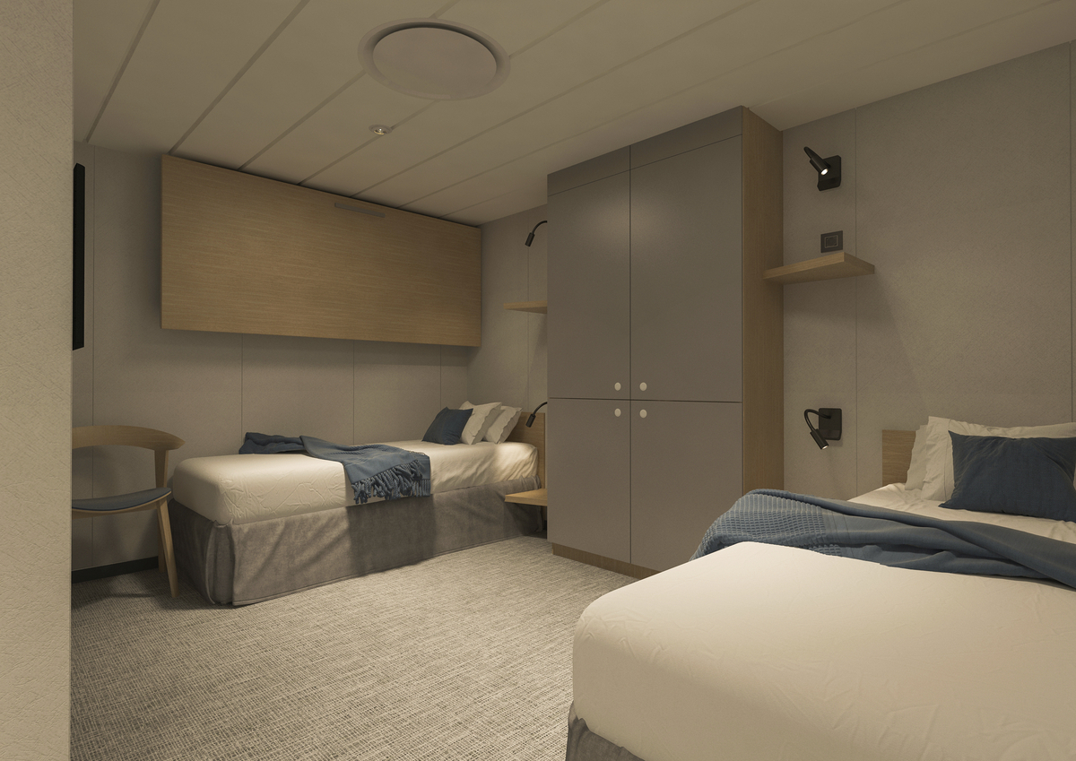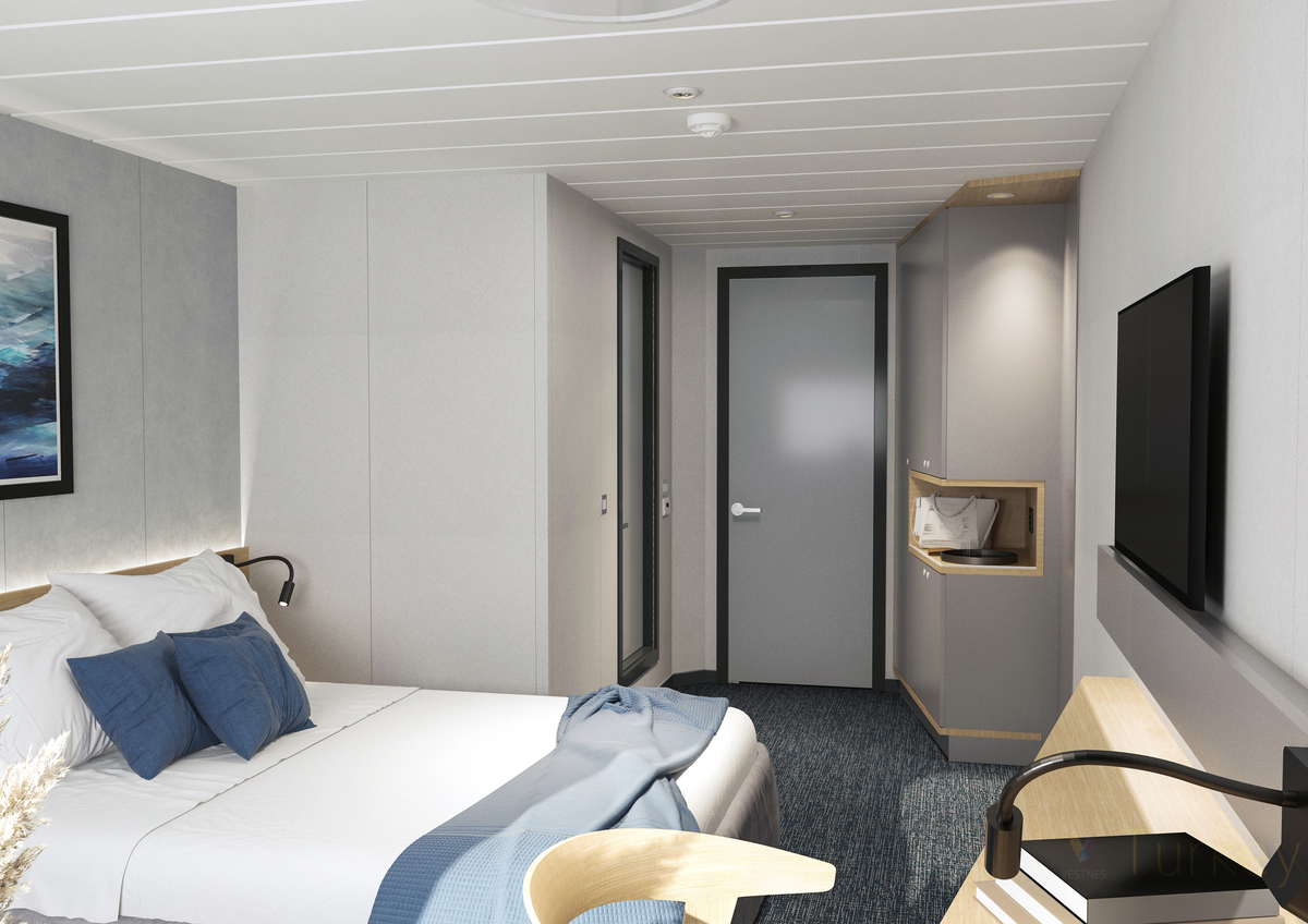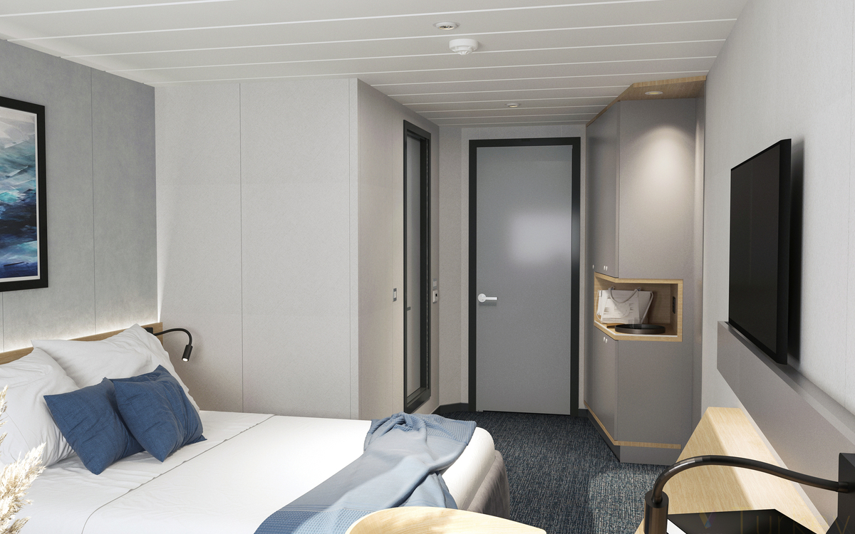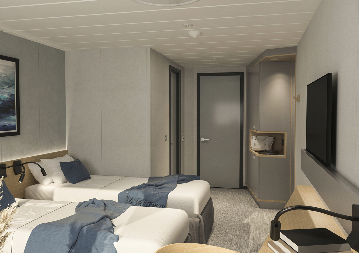 Die Schiffe von Havila haben insgesamt 179 Kabinen, verteilt auf vier Decks (alle Kabinen haben kostenloses WLAN und mehrere USB-Anschlüsse, WC/Dusche, TV, Kühlschrank (ausser Interior) oder Kühlschublade). Die Werke im öffentlichen Schiffsbereich wurden von Ingrid Haukelidsæther geschaffen. Zusätzlich erzählen Wandtafeln mit alten Fotografien und Texten von der Küstengeschichte Norwegens.