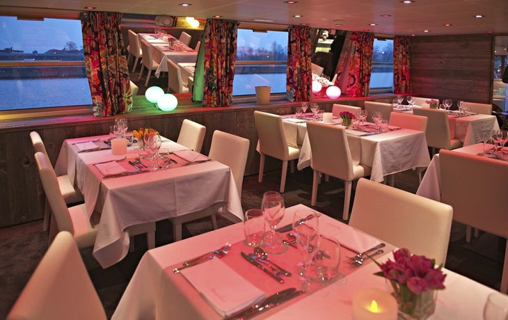 Auf dem Schiff wird viel Wert auf exzellentes Essen gelegt. Der Tag beginnt mit einem vielfältigen Frühstücksbuffet. Das Mittag- und Abendessen sind an den Platz servierte 3-Gang-Menüs mit lokalen Spezialitäten und französischer Küche. Während der Reise sind die Getränke inkl. gutem Hauswein und Bar-Getränke (Ausnahme Champagner und Weine aus der speziellen Weinkarte) inbegriffen.