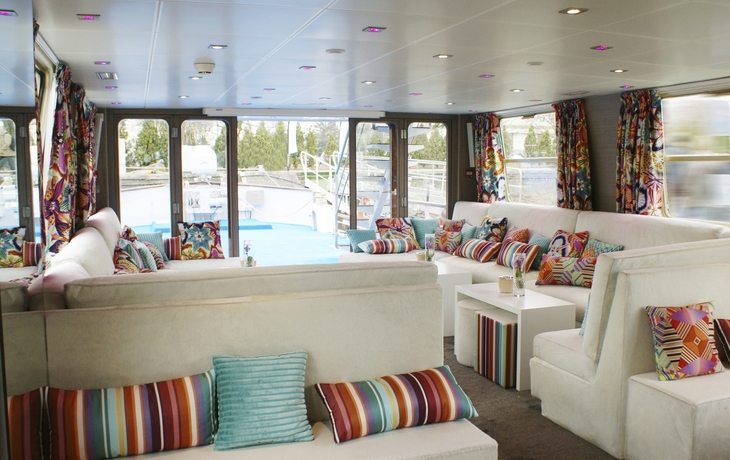 Auf dem innen vollständig klimatisierten Schiff finden Sie einen hübschen Speisesaal und einen Salon mit Bar. Im vorderen Teil des Schiffes ist das grosszügige Sonnendeck mit Liegestühlen und ein Jacuzzi. Für sportliche Betätigung stehen den Gästen Fahrräder zur Verfügung. Gratis W-LAN vorhanden.