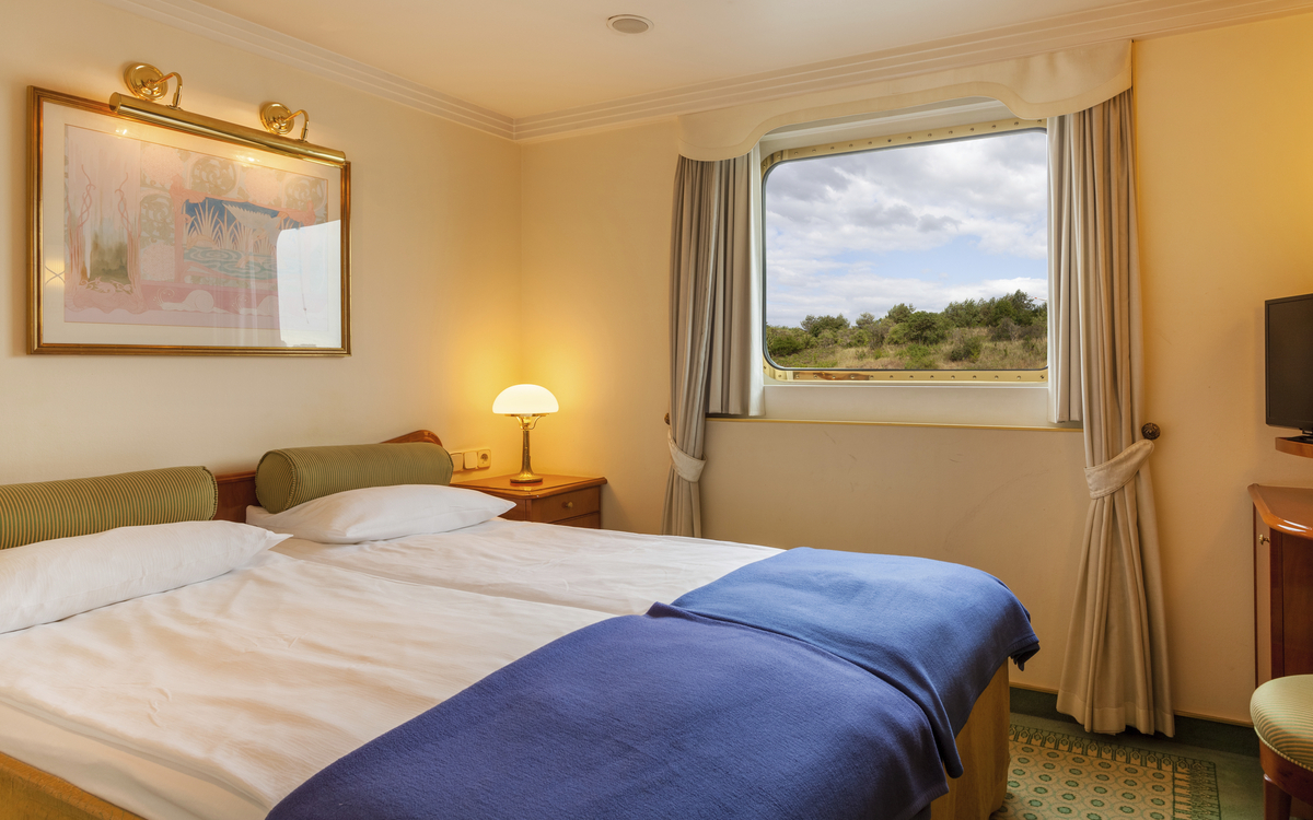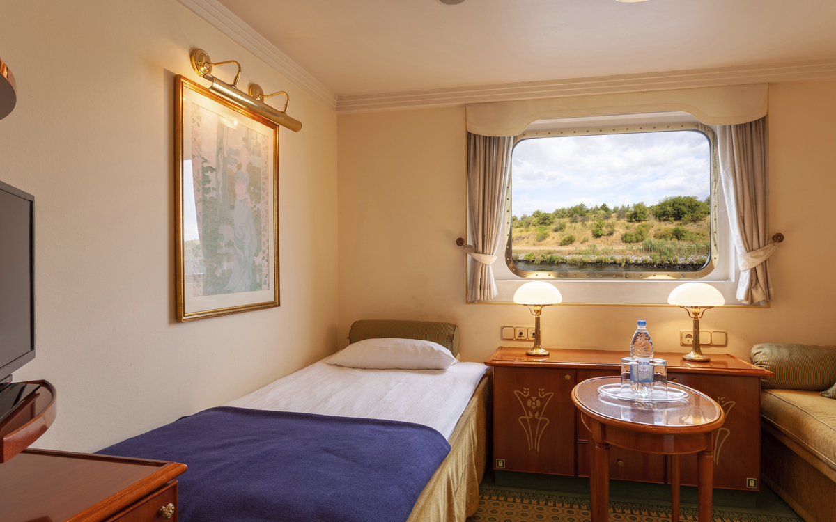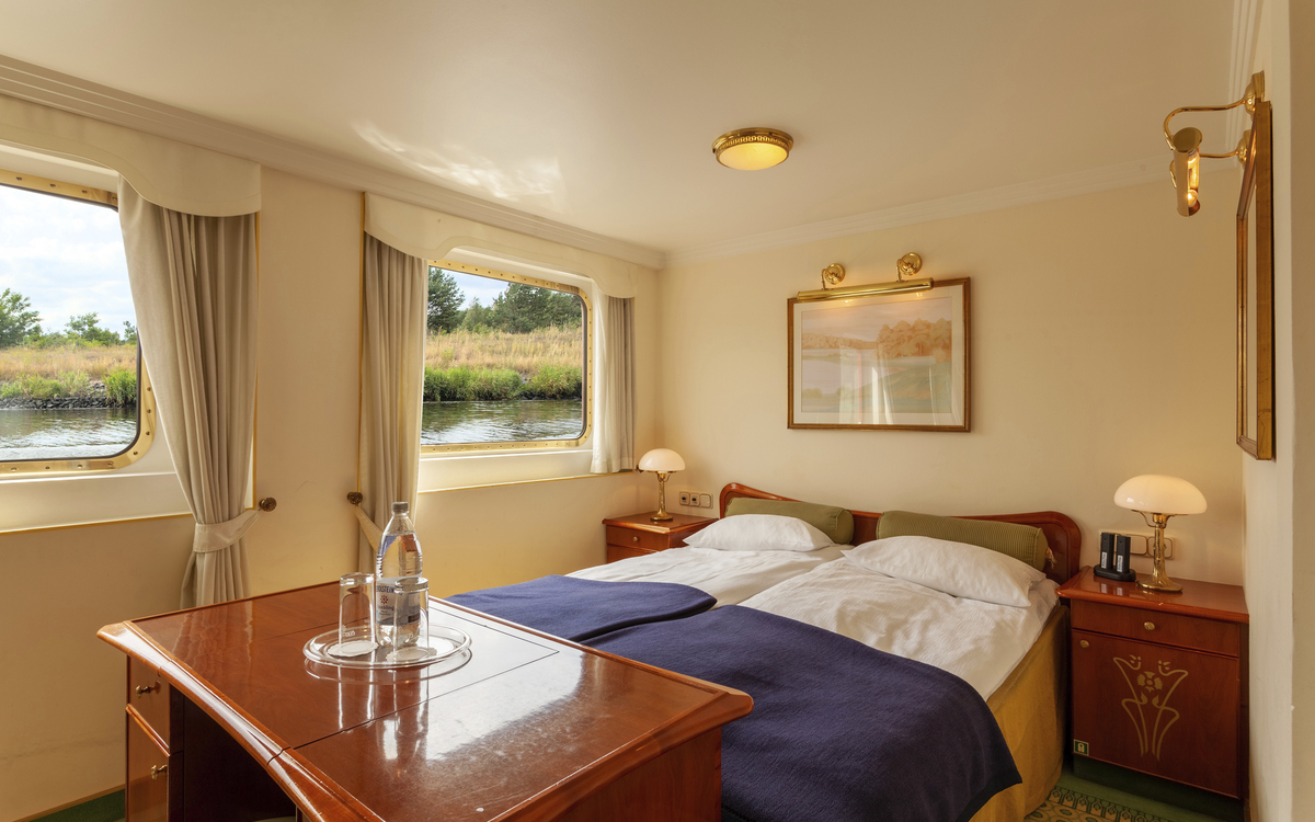 Das im Belle Époque-Stil konzipierte Schiff bietet den max. 80 Passagieren viel Komfort und Ambiente. Alle Kabinen sind mit Dusche/WC, Föhn, TV, Safe, Kühlschrank, Bordtelefon und individuell regulierbarer Klimaanlage ausgestattet. Die ca. 12 m² grossen, aussen liegenden 2-Bettkabinen verfügen entweder über ein Doppelbett (1.50 × 2.00 m) mit zwei Matratzen oder über ein Sofabett und ein feststehendes Bett. Die beiden Deluxe Kabinen (ca. 13 m²) besitzen ein Doppelbett mit zwei Matratzen. Die 1-Bettkabinen (ca. 9 m²) verfügen über ein Sofabett. Sämtliche Kabinen des Oberdecks haben einen französischen Balkon. Die Fenster der Kabinen auf dem Hauptdeck lassen sich aus Sicherheitsgründen nicht öffnen.