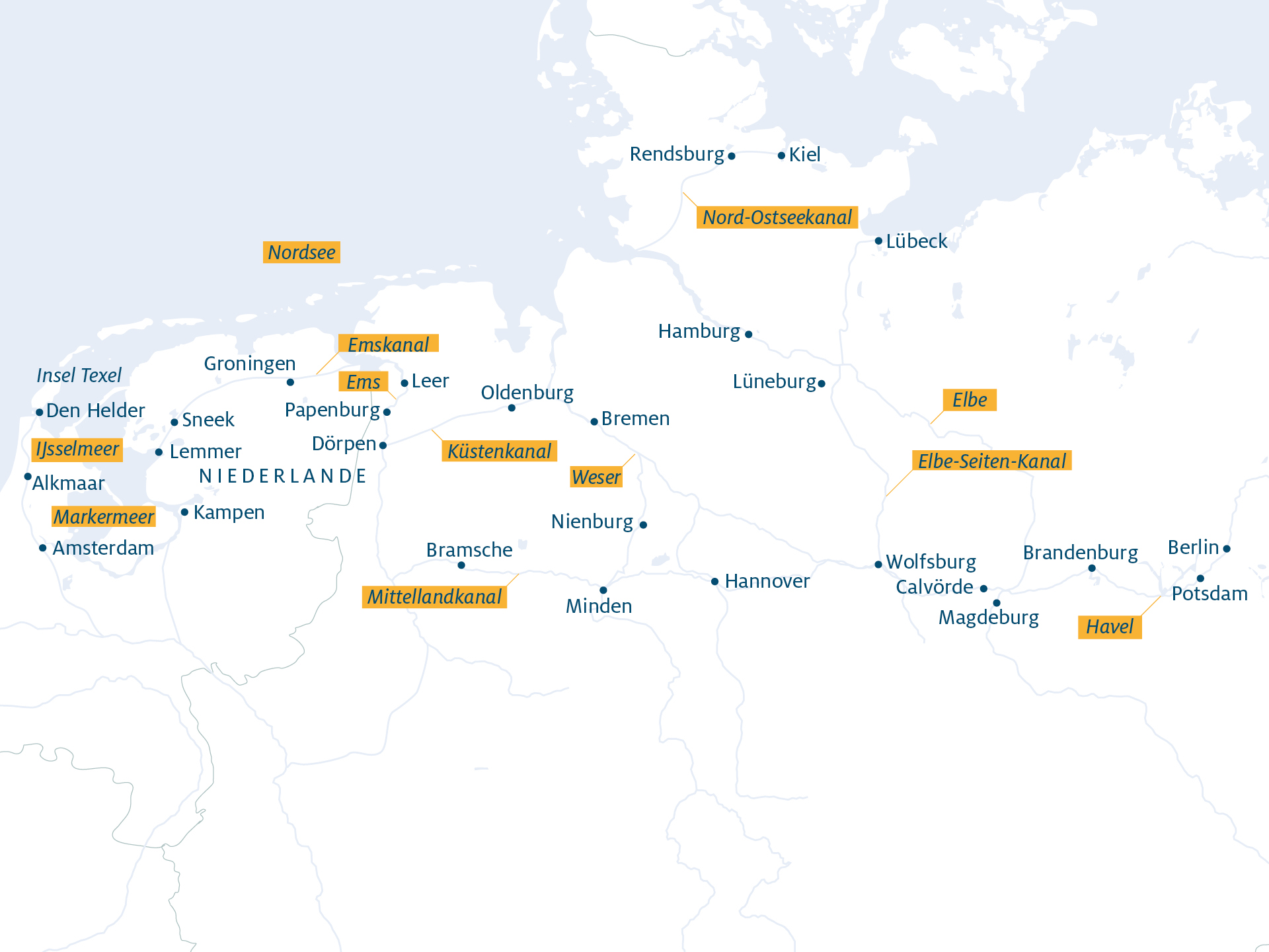 Unsere Schiffe für Flusskreuzfahrten auf Mittellandkanal, Weser, Hunte und Ems